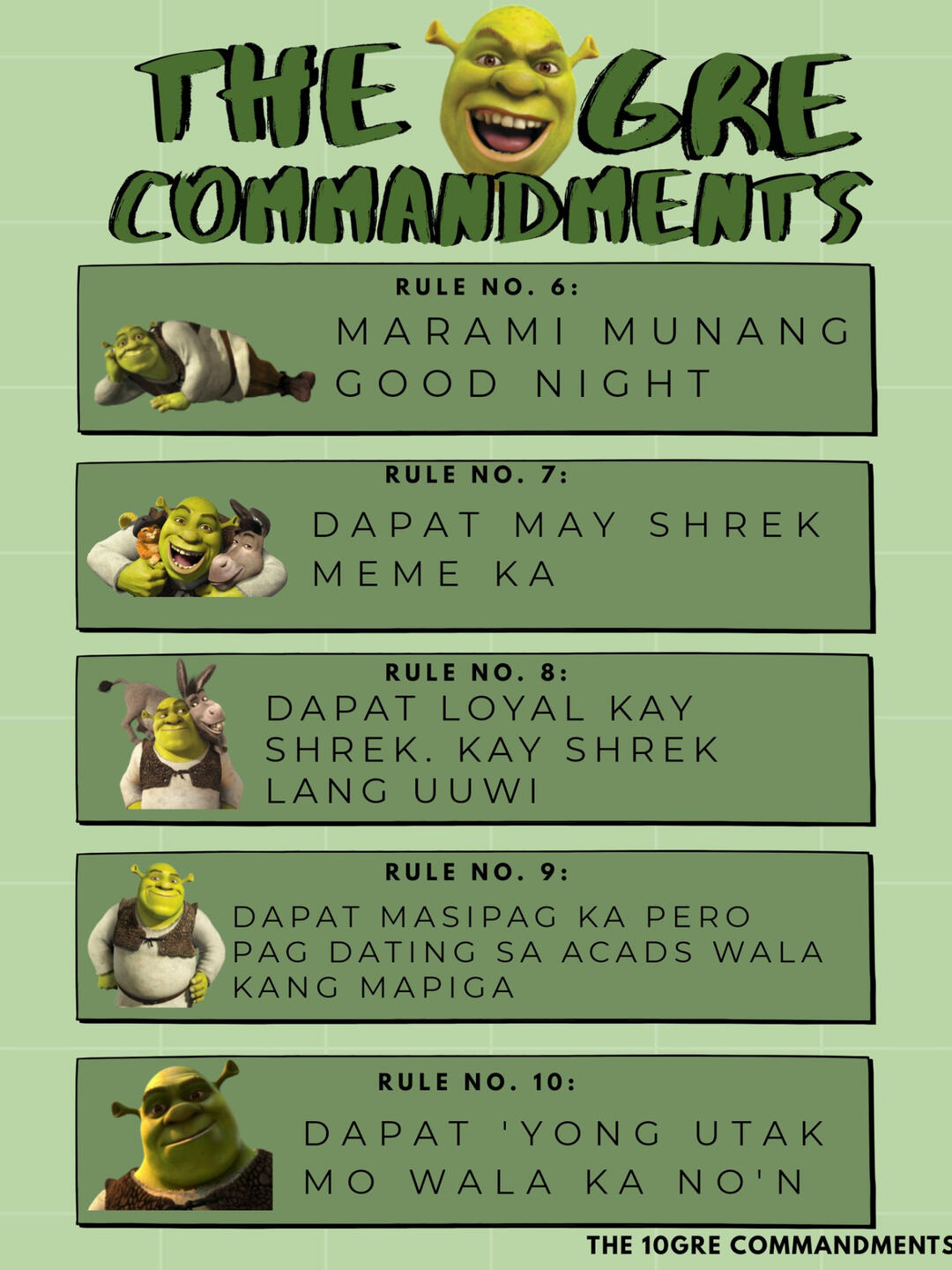○ Rule #8: Dapat loyal kay Shrek. Kay Shrek lang uuwi.